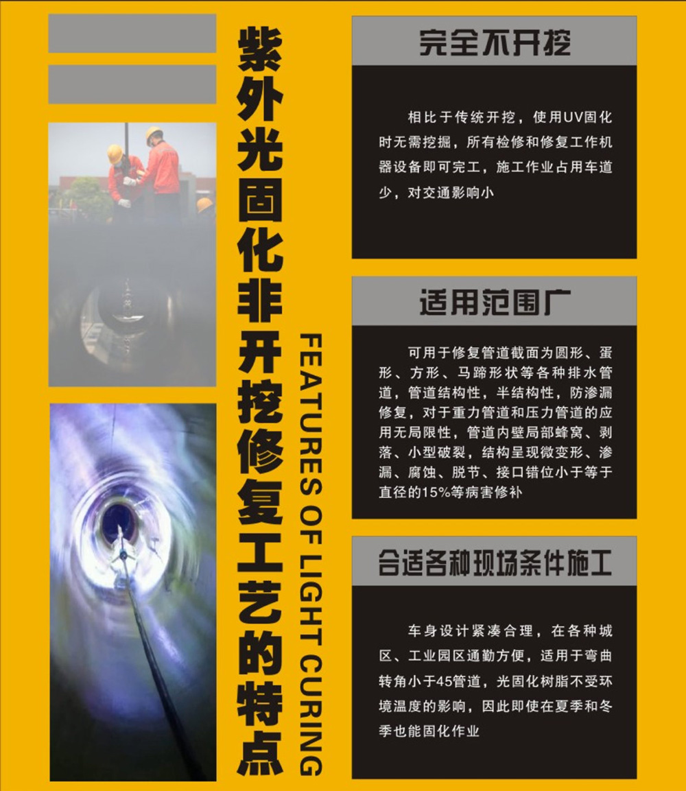 我公司同時承接光固化管道修復,光固化車輛租賃,光固化管道修復技術培訓。