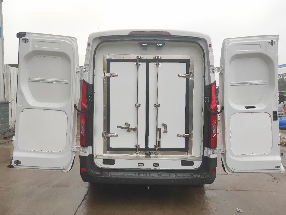 (2)廂板材質:內外壁板選用國內優質玻璃鋼(不吸光、隔熱性好、硬度強、抗氧化);中間保溫層為XPS擠塑聚笨板;廂體厚度8CM。地板采用鋁花紋板,門邊條采用迷宮式橡膠密封條。