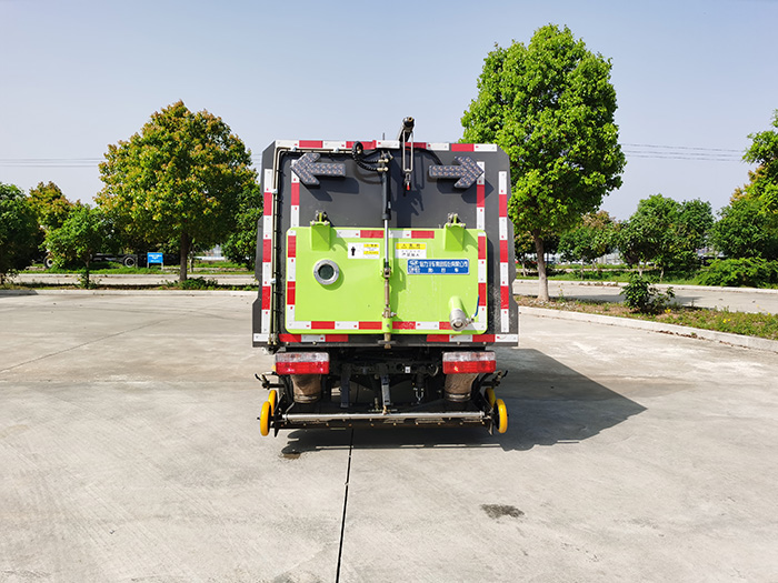 11、帶工作及倒車監控裝置,倒車保護系統。具備倒車保護裝置,在作業過程中如遇緊急倒車,智能化的控制系統會自動停止作業并收回掃盤、吸盤和側噴桿;具有防止舉升垃圾箱翻車保護;具有檢修安全保護。