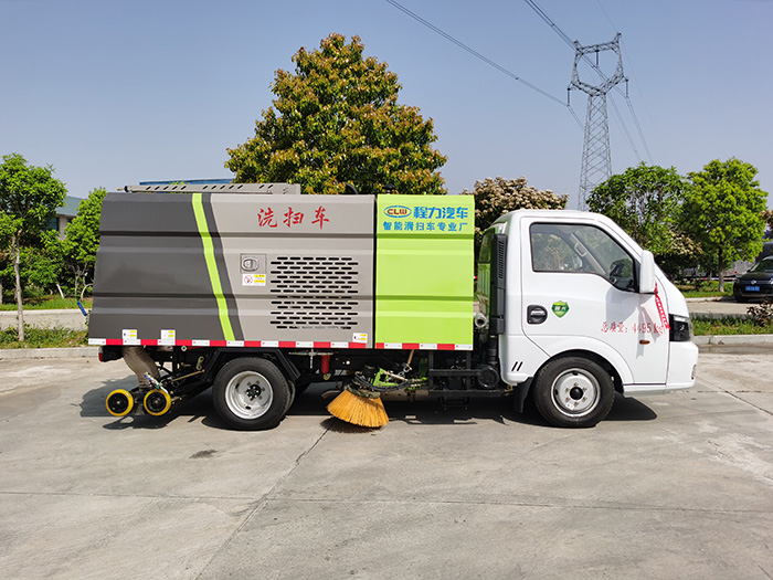該車是采用東風小多利卡/福瑞卡底盤改裝而成,集掃路車、灑水車和高壓清洗車功能于一體,具備路面清掃、路面洗刷、高壓清洗、低壓沖洗、路緣石洗刷、垃圾收集、污水回收、噴霧降塵和道路隔離墻清洗、小廣告清洗等多種作業功能。具有先進的智能化一鍵控制技術,全部作業均在駕駛室內完成,作業時,只需選定作業模式后,各作業機構的啟動與關停由程序自動控制。有“全洗掃”、“左洗掃”、“右洗掃”、“全掃”、“左掃”和“右掃”、“全洗”、“左洗”和“右洗”9種作業模式可供選擇。