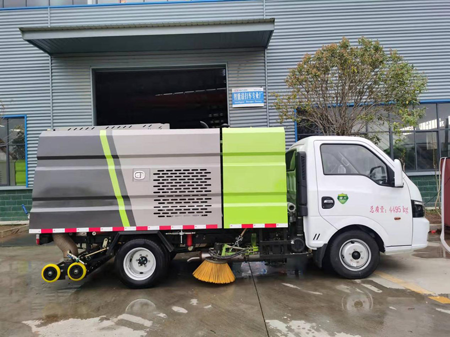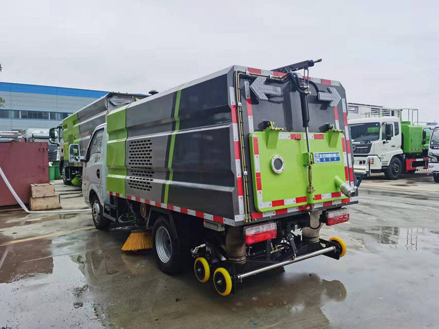 小型道路洗掃車,同時兼具道路清掃車及路面清洗車雙項功能。清掃作業時無二次揚塵。清洗道路時也可回收路面污水,防止污水對路面的二次污染。