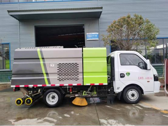 超強動力吸盤,有效吸入垃圾,強勁洗掃能力,地面干凈整潔。加裝前置沖洗架,駕駛室一鍵控制,更有效洗掃清潔路面,洗掃無死角。